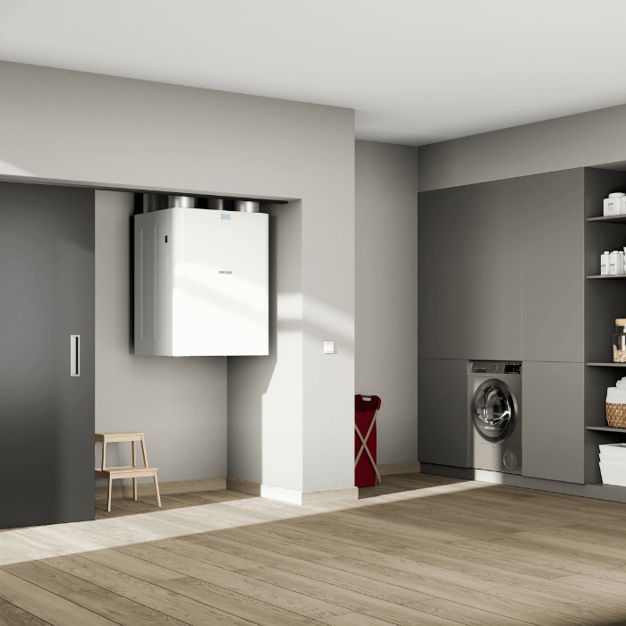 Każda jednostka montowana jest osobno w ścianie i zapewnia wymianę powietrza w danym pomieszczeniu.